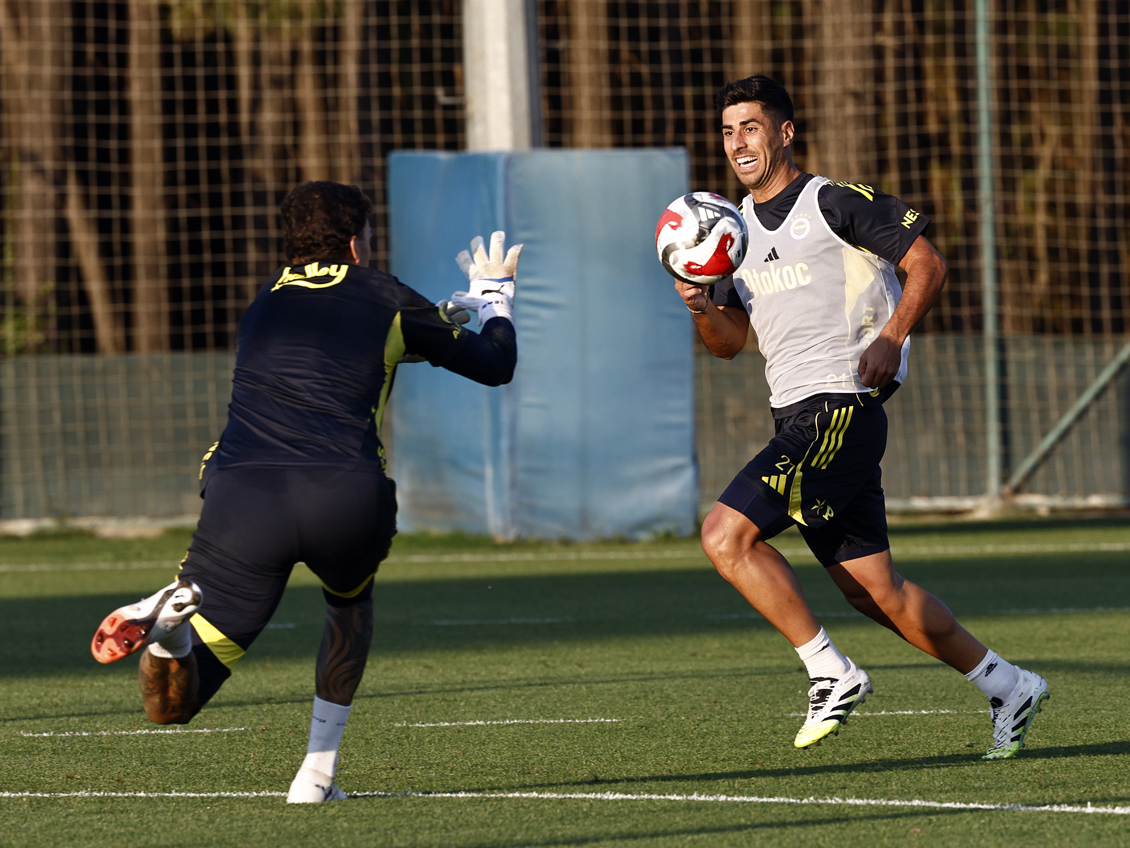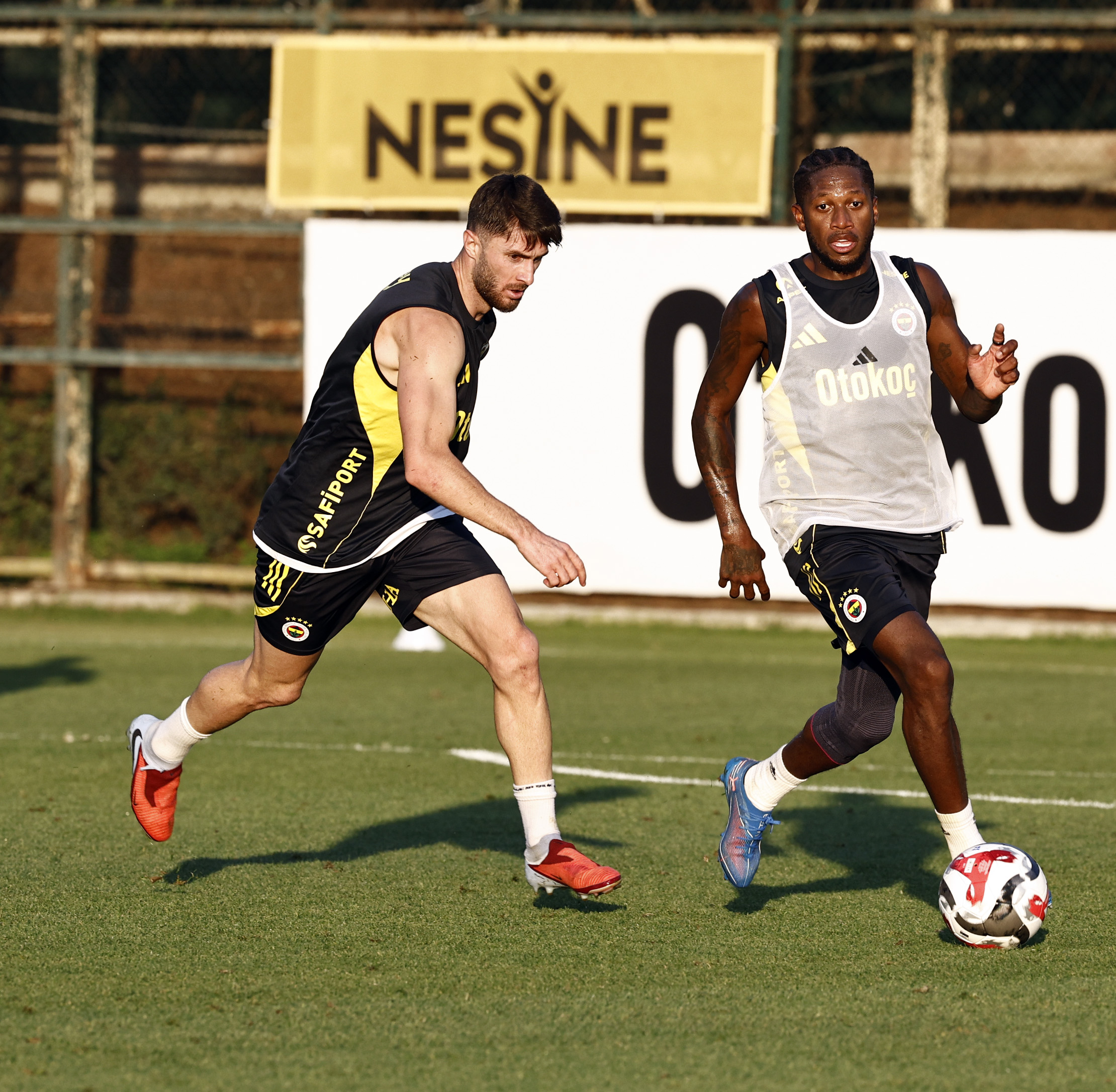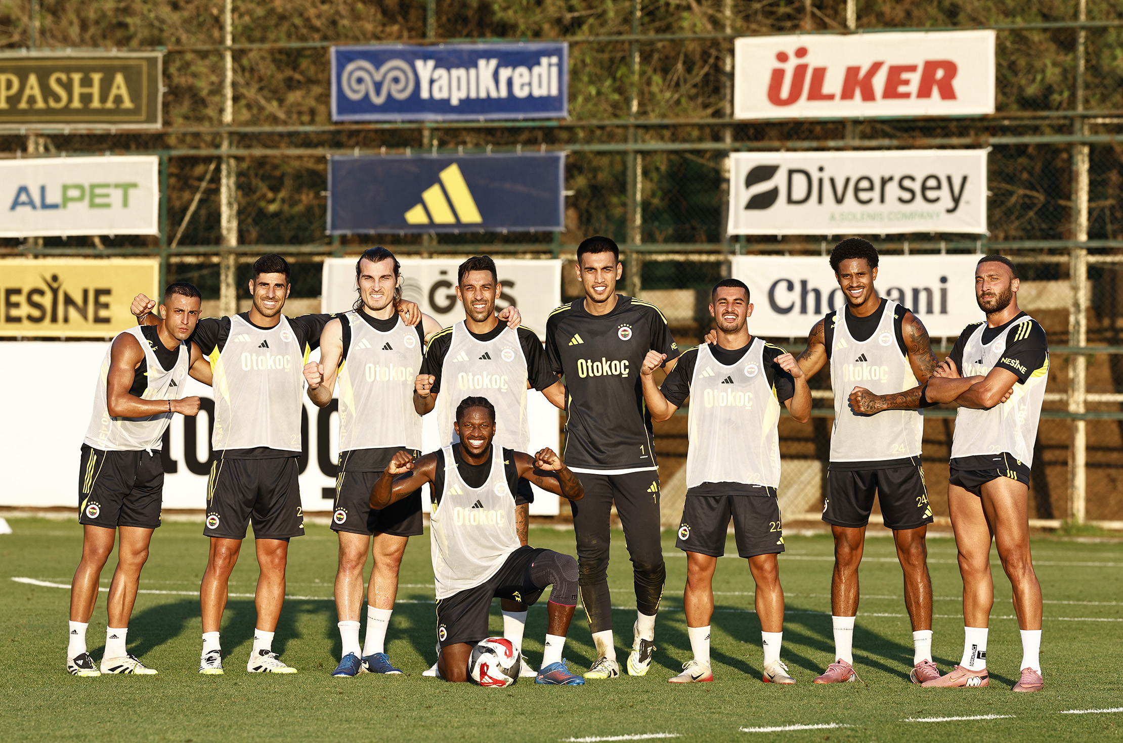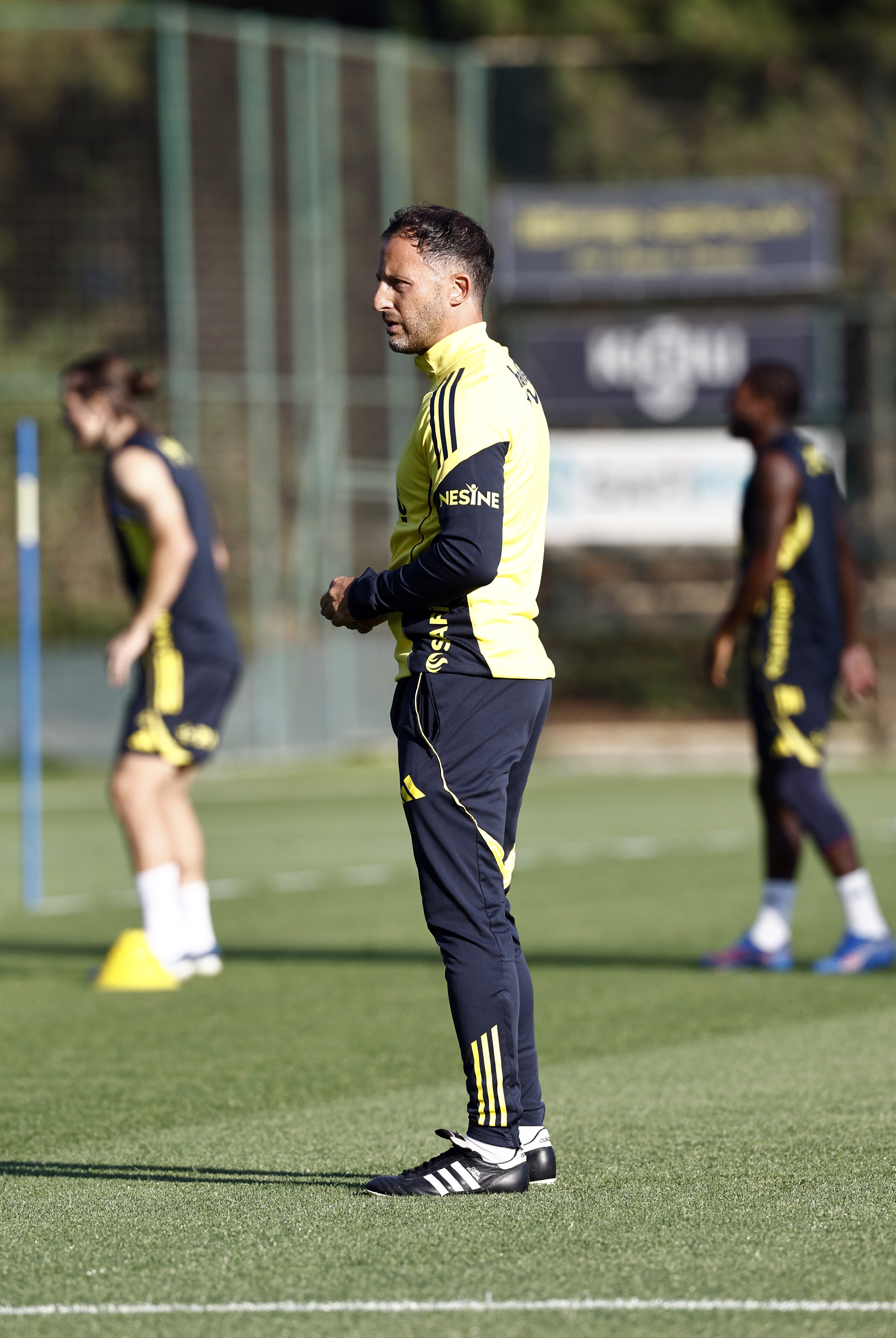 Yeni Teknik Direktörümüz Domenico Tedesco yönetiminde Fenerbahçe Can Bartu Tesisleri’nde gerçekleştirilen idmanın ilk 15 dakikası basına açık olarak gerçekleştirildi. Salonda kuvvet ve dayanıklılık hareketleriyle başlayan idman koşu, ısınma, koordinasyon çalışmalarıyla devam etti. Ardından pas çalışması ve dar alanda çift kale maçlar yapan ekibimiz, antrenmanı taktiksel ve bireysel çalışmalarla tamamladı.